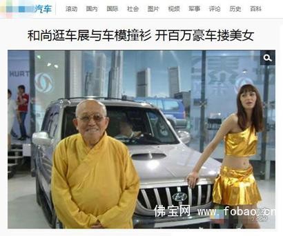 这则“和尚与车模撞衫”的榜首新闻,一上来就总结道——“曾经吃素念经的一群大师们,也被这个随波逐流的社会所改变,今天的他们不再静心思坐,不再吃素念佛,他们都在追求个人‘高品质’的生活。”
